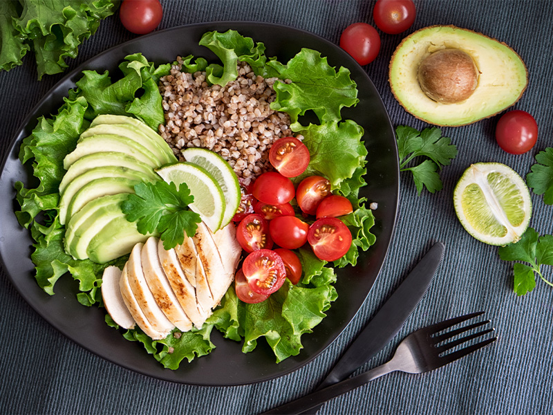 ناهار ( پروتئین بالا، کربوهیدرات پیچیده، چربی سالم، ویتامین و فیبر)